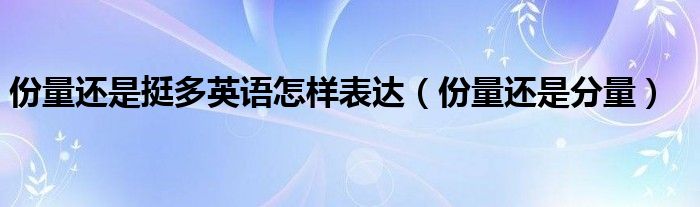 大家好,小联来为大家解答以上的问题。份量还是挺多英语怎样表达,份量还是分量这个很多人还不知道,现在让我们一起来看看吧!