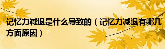 大家好,乐天来为大家解答以下的问题,记忆力减退是什么导致的,记忆力减退有哪几方面原因很多人还不知道,现在让我们一起来看看吧!