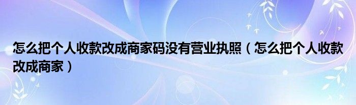 今天小饼为大家解答以下问题,关于怎么把个人收款改成商家码没有营业执照,怎么把个人收款改成商家很多人还不知道,现在让我们一起来看看吧!