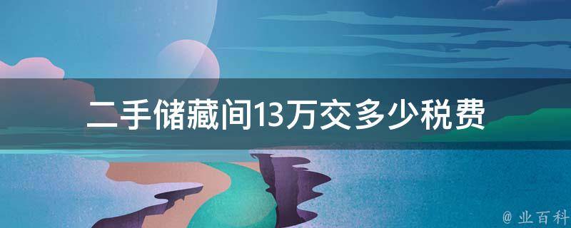 二手储藏间13万需要交约1300元的税费。二手储藏间属于存量房,存量房房产税需要业主和销售方签订了买房合同生效后的30天内,向当地的房地产交易中心办理的转移登记,以房产原值为计税依据,税率是1.2%,以房产租金收入为计税依据,税率为12%