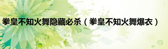 大家好,我是小科,我来为大家解答以上问题。拳皇不知火舞隐藏必杀,拳皇不知火舞爆衣很多人还不知道,现在让我们一起来看看吧!