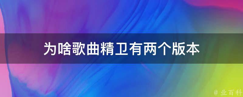 歌曲《精卫》有两个版本是因为不同的歌手或音乐制作人对这首歌曲进行了重新演绎或重新编曲。歌手或音乐制作人会根据自己的风格和音乐理念来重新诠释一首歌曲,从而呈现出不同的版本,这样可以让歌曲风格更加多样化,满足不同听众的喜好。