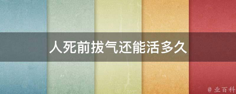 人死前拔气还能活多久要根据人的实际情况进行判断,正常情况下一般老年人能够持续2-12个小时左右,一些执念比较深的老年人,有的时候甚至能够拖延到数天左右的时间,这完全根据患者的精神力来判断。在这个阶段,所有的新陈代谢会停止,整个机体也不能再复活。