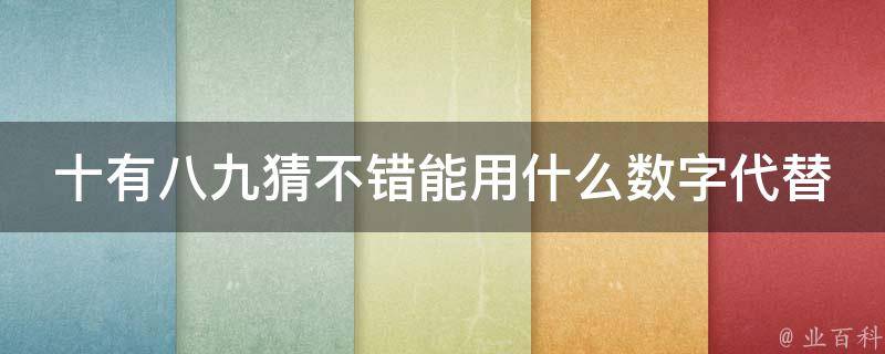 十有八九猜不错能用数字9代替,因为十有八九就是9成把握,所以可以用数字9代表。猜谜语主要指暗射事物或文字等供人猜测的隐语,也可引申为蕴含奥秘的事物。谜语源自中国古代民间,历经数千年的演变和发展。它是古代中国劳动人民集体智慧创造的文化产物。