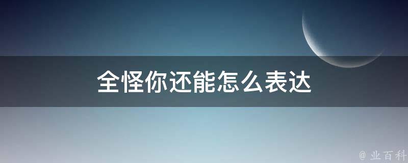 全怪你还可以表达为:千夫所指、众矢之的、众叛亲离等。说都怪你,说明他把所有事情的后果都归咎于一个人的问题,自己没有认识到事情都是有两面性的。其实所有人都在怪你,并不一定是你做的事是错事,真理往往掌握在少数人手里就是这个道理。