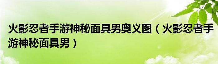 大家好,我是小科,我来为大家解答以上问题。火影忍者手游神秘面具男奥义图,火影忍者手游神秘面具男很多人还不知道,现在让我们一起来看看吧!