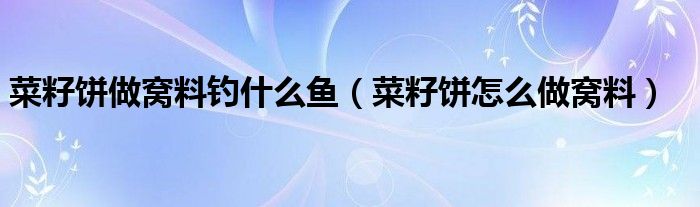 大家好,我是小科,我来为大家解答以上问题。菜籽饼做窝料钓什么鱼,菜籽饼怎么做窝料很多人还不知道,现在让我们一起来看看吧!