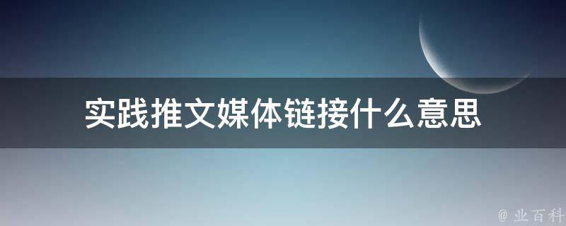 实践推文媒体链接的意思是实践领域中一些推广文章的媒体链接。这些链接通常会引导读者查看相关的新闻报道、案例研究、行业动态等内容,以帮助读者更好地了解实践领域的发展趋势、技术应用和市场动态等信息。