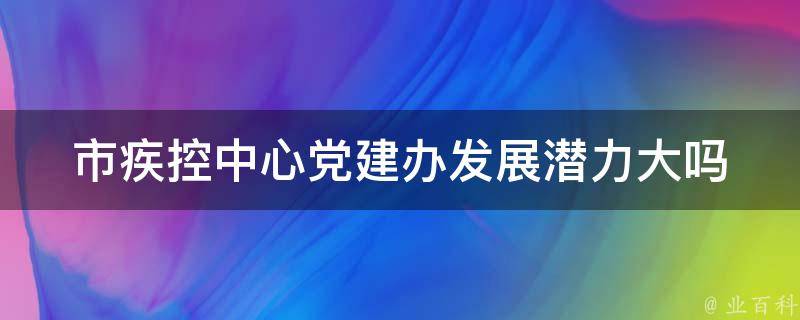 市疾控中心党建办发展潜力大。市疾控中心作为地方政府的重要部门之一,承担着疾病预防控制和公共卫生服务等方面的重要职责,其地位和重要性不言而喻。而党建办作为疾控中心的组成部分,负责党的建设和思想政治工作,具有不可或缺的地位。随着国家对党建工作的重视程度不断提升,疾控中心的党建工作也将得到更多的关注和支持,这也为党建办的发展提供了更多的机遇。