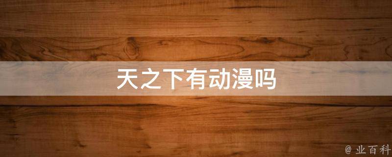 天之下没有动漫。《天之下》是著名编剧三弦原创新武侠小说。讲述了昆仑纪元,分治天下的九大门派为新一届盟主之位明争暗斗,关外萨教蛮族卷土重来。乱世中,芸芸众生百态沉浮,九大家英杰辈出,最终汇成一首大江湖时代的磅礴史诗,并推动天下大势由分治走向大一统。