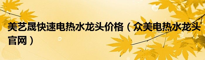 今天小饼为大家解答以下问题,关于美艺晟快速电热水龙头价格,众美电热水龙头官网很多人还不知道,现在让我们一起来看看吧!