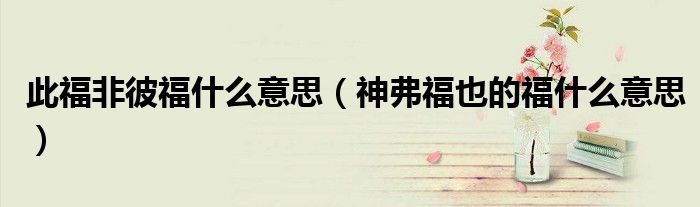 大家好,小夏来为大家讲解下。此福非彼福什么意思,神弗福也的福什么意思很多人还不知道,现在让我们一起来看看吧!
