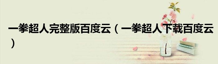 大家好,小联来为大家解答以上的问题。一拳超人完整版百度云,一拳超人下载百度云这个很多人还不知道,现在让我们一起来看看吧!