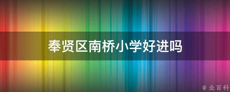 奉贤区南桥小学不好进,除了分数要求,还有学区划片的问题。南桥奉外小学位于上海市奉贤区沪杭公路2158号,是一所以招收农民工子弟为特色的民办小学,实行六三制九年义务小学阶段教育,招收6周岁-12周岁适龄少年儿童。
