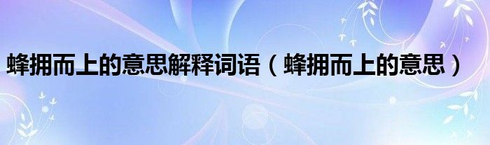 大家好,我是小科,我来为大家解答以上问题。蜂拥而上的意思解释词语,蜂拥而上的意思很多人还不知道,现在让我们一起来看看吧!