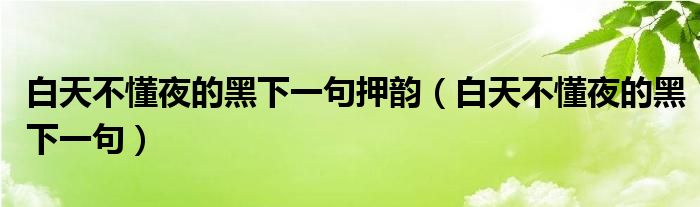 大家好,我是小科,我来为大家解答以上问题。白天不懂夜的黑下一句押韵,白天不懂夜的黑下一句很多人还不知道,现在让我们一起来看看吧!