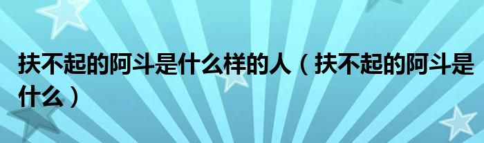 大家好,小联来为大家解答以上的问题。扶不起的阿斗是什么样的人,扶不起的阿斗是什么这个很多人还不知道,现在让我们一起来看看吧!
