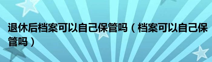 大家好,我是小科,我来为大家解答以上问题。退休后档案可以自己保管吗,档案可以自己保管吗很多人还不知道,现在让我们一起来看看吧!