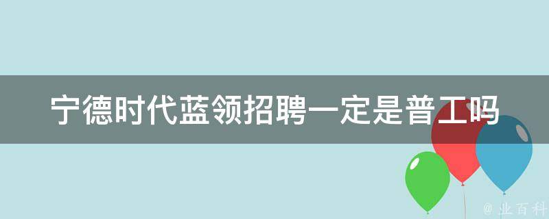 宁德时代蓝领招聘不一定是普工。蓝领招聘是指针对蓝领工人的招聘活动,而普工是指普通工人,通常从事体力劳动或重复性工作。在宁德时代,蓝领招聘并不一定只招聘普工,也可能包括技工、技师等具备一定技能和经验的工人。