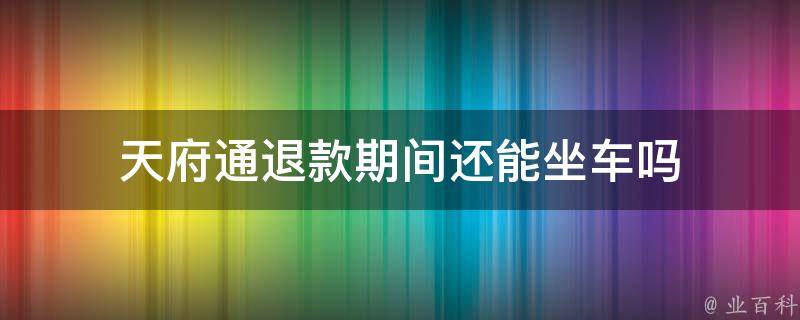 天府通退款期间能坐车。天府通app处于试运行阶段,正加紧开发在线退款通道,在试运行期结束后,系统全面上线时,将正式开通在线退款通道。在试运行期间,如果乘客有账户余额的退款需求,需前往天府通客服网点,凭手机内账户余额办理现金退款。