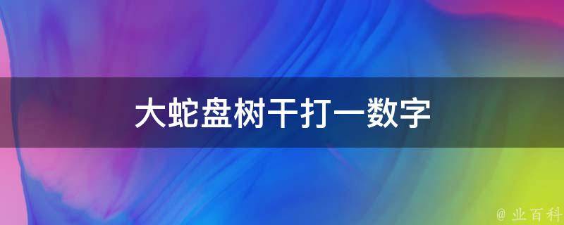 大蛇盘树干打一数字是8。因为蛇盘树,在形态上和数字8很相近,所以,大蛇盘树干打一数字是8。在数字谐音中,8代表发、拜拜、不。另外,0代表圆满、完美、无尽;1代表唯一、你、起点;2代表爱、两人世界;3代表想念、生命、生活;4代表是的、时时。