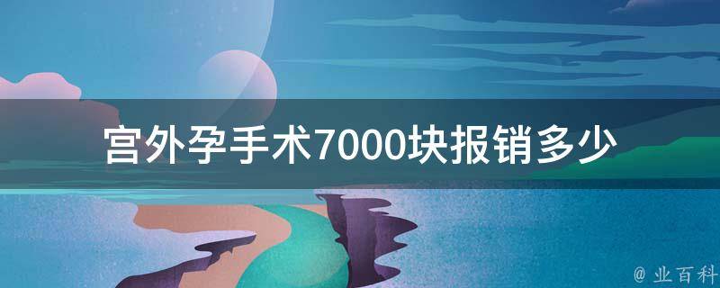 视情况而定。宫外孕手术花费7000元,具体报销金额与多种因素有关,如不同地区、不同医院的报销比例、个人医保类型、报销政策等。因此,如果需要报销宫外孕手术的费用,建议及时咨询当地的医保部门或相关医院,了解具体的报销政策和流程。