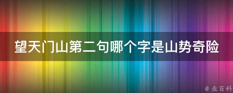 望天门山第二句中的回字写出了山势奇险。望天门山的原句是:天门中断楚江开,碧水东流至此回。两岸青山相对出,孤帆一片日边来。《望天门山》是唐代大诗人李白的诗作,此诗描写了诗人舟行江中顺流而下远望天门山的情景。