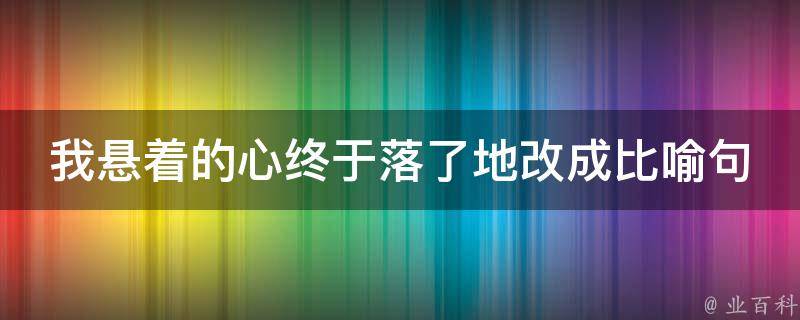 我悬着的心终于落了地改成比喻句是我悬着的心终于像一块石头落了地。因为有了喻体石头,这句话就变成了一个比喻句。比喻句是一种常用修辞手法,意思是打比方,用浅显、具体、生动的事物来代替抽象、难理解的事物。