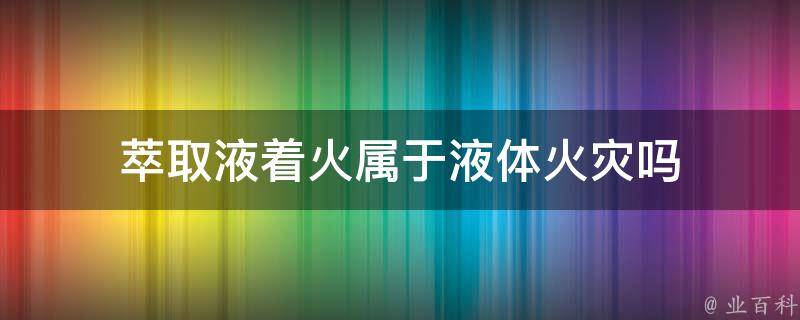 萃取液着火属于液体火灾。萃取是利用溶质在不同溶剂中溶解度的不同,用一种溶剂把溶质从它与另一溶剂所组成的溶液中提取出来的过程。萃取操作常伴随加热、搅拌。常用的萃取剂多为易燃、易爆液体,一旦操作不当导致萃取剂泄漏,易引发火灾事故。
