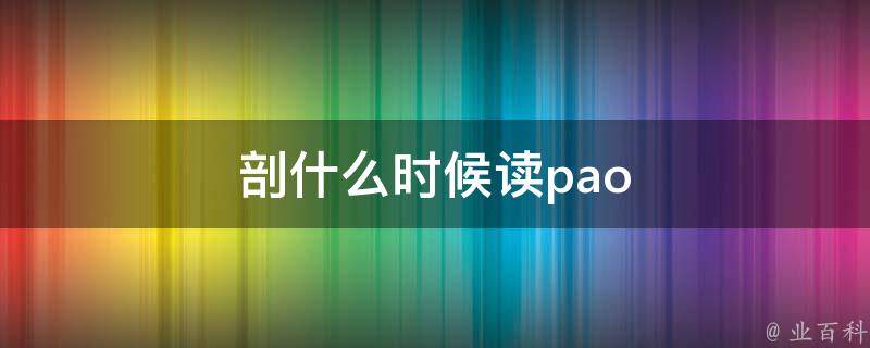 剖在任何情况下都不读pao,这属于错误读音。剖,汉语一级字,读作剖(pōu),本义指破开,中分。意思是破开时组词有:剖开、解剖、剖面、剖腹;意思是分析、分辩时组词有:剖白、剖解、剖析。
