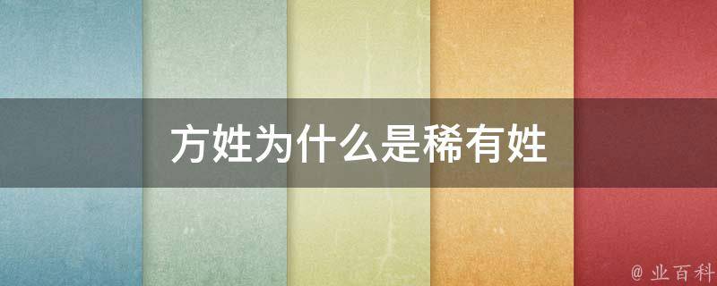 方姓不是稀有姓。方姓人口占了当代人口的0.36%,有400多万人,主要集中于安徽、河南两省。其中安徽为当代方姓第一大省,占方姓总人口的18.5%。方姓源于北方,盛于南方。先秦时期,方姓人活动在河南一带;西汉末,方姓族人东迁至安徽,逐渐形成望族。