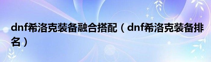 大家好,小联来为大家解答以上的问题。dnf希洛克装备融合搭配,dnf希洛克装备排名这个很多人还不知道,现在让我们一起来看看吧!