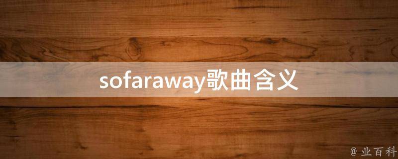 sofaraway歌曲表达了对爱人最真挚的感情。SoFarAway由荷兰音乐制作人、DJ马丁盖瑞斯和法国电子音乐制作人、DJ大卫库塔制作的一首浩室舞曲,由JamieScott和RomyDya演唱。单曲于2017年12月1日发行。