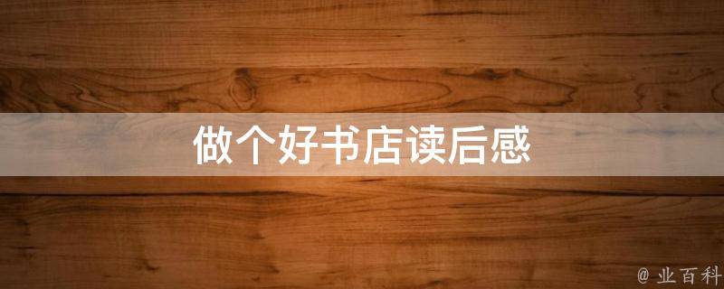 做个好书店读后感