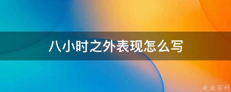 在八小时之外,我的表现情况通常是积极主动和高效率的。我会利用自己的空闲时间进行个人发展和学习,提升自己的技能和知识。此外,我也会参与志愿者活动,为社区做出贡献。我喜欢锻炼身体,经常参加运动和健身活动,保持健康的生活方式。我还会与朋友和家人保持良好的关系,花时间陪伴他们。总之,我会充分利用八小时之外的时间,追求个人成长和幸福生活。