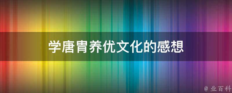 唐胄养优文化展现了中华民族传统文化的独特魅力。通过学习,我深入了解了唐胄养优文化的历史渊源、哲学思想、道德规范等方面,感受到了其深厚的文化底蕴和独特的文化魅力。这种文化不仅蕴含着丰富的智慧和经验,还体现了中华民族的传统美德和人文精神。