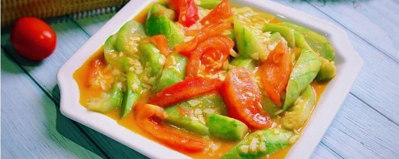 丝瓜可以和西红柿一起吃。丝瓜和西红柿之间所含的营养素没有相克的地方,西红柿和丝瓜都属于家常菜,经常会出现在饭桌上,可以一起吃。西红柿丝瓜一起食用具有清解热毒,消除烦热的功效。