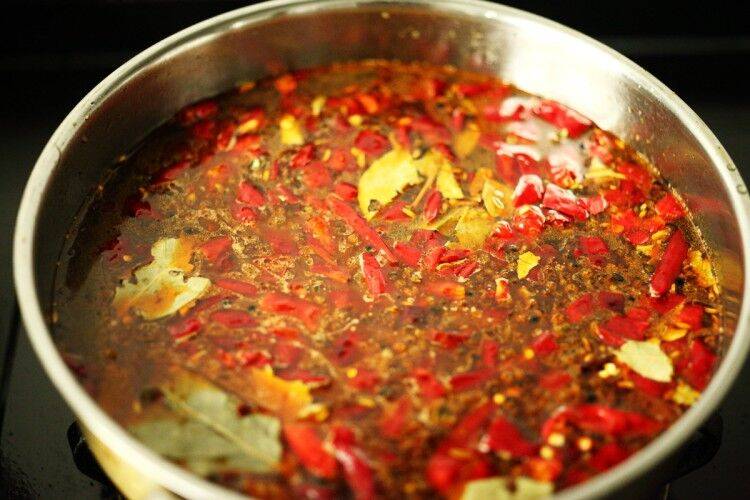 2、加入香料、辣椒、花椒。