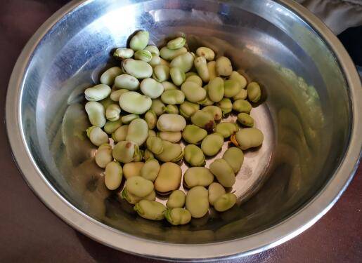用料:嫩胡豆350克、食盐1勺、花椒10粒、干辣椒3个。