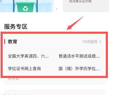 4、下拉找到“服务专区”中的“教育”,点击进入。