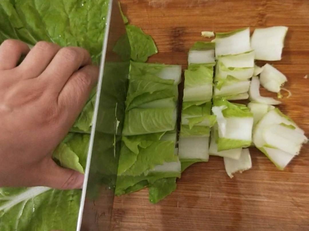 1、杭白菜2棵洗干净,切成小段备用。