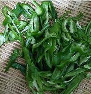 4、放入青椒,放盐、鸡精,起锅装盘即可。