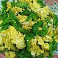 鸡蛋3个、油适量、盐适量、青椒4个。