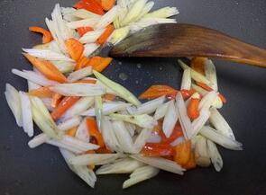 倒入调味汁,可根据个人口味,加少许盐或红糖。