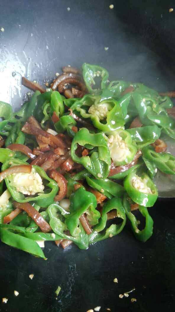 7、放适量料酒翻炒均匀,起锅。