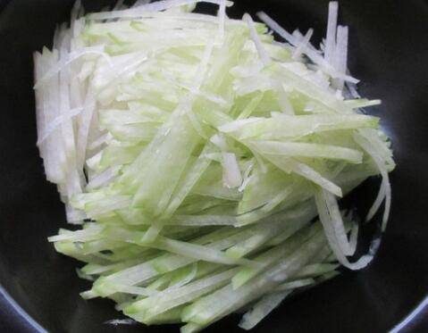 用料:青萝卜半个、海虾少许、葱、姜、盐、花生油。