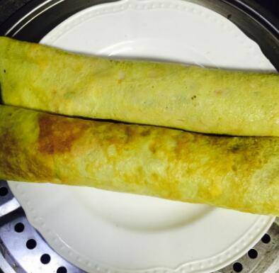5、摊好的蛋饼薄而脆,放凉后备用。