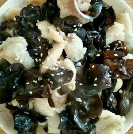 锅里倒油,先下入鱼片翻炒,然后放入木耳、盐、味精,倒入少许水炖一分钟。