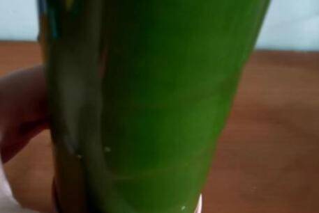 2、把焯好水的菠菜放入榨汁机里,倒入100克温水,把它榨成菠菜汁备用。