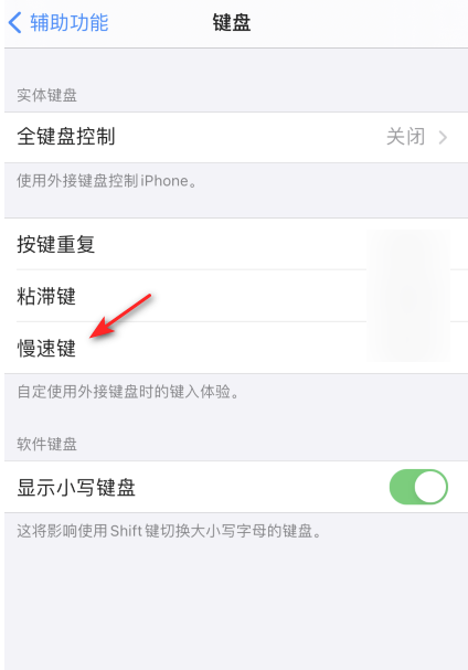 然后将慢速键的滑动按钮向左滑动关闭即可。